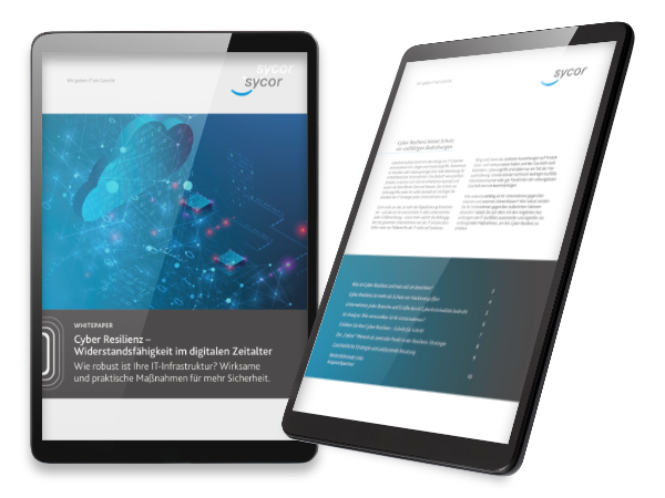Wie robust ist Ihre IT-Infrastruktur? Wirksame und praktische Maßnahmen für mehr Sicherheit finden Sie im Whitepaper „Cyber Resilienz – Widerstandsfähigkeit im digitalen Zeitalter“